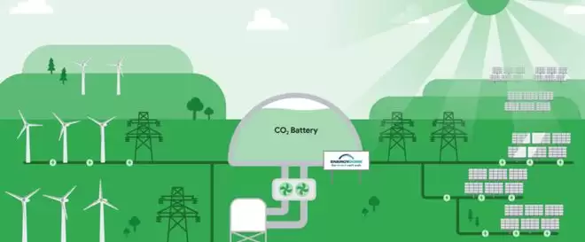 在这样的背景下,意大利初创公司 Energy Dome(能量穹顶)提出了全新的储能方案——二氧化碳电池。其核心原理是利用二氧化碳在气态与液态间转换,从而储存与释放能量。