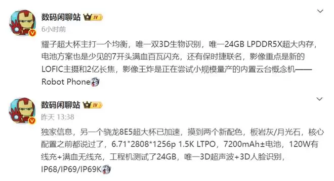 值得一提的是,博主甚至暗示荣耀真正的大招可能是正在尝试小规模量产的内置云台概念机,期待值也是非常的高。