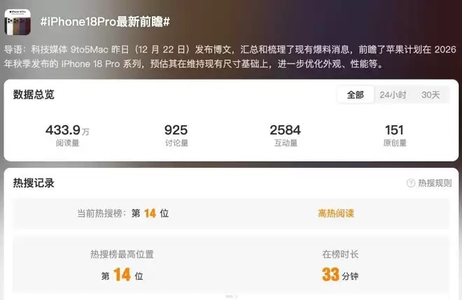 今天,# iPhone18Pro最新前瞻# 这一话题登上了热搜榜单,我们也来一起看看这代新iPhone有望带来的升级吧。