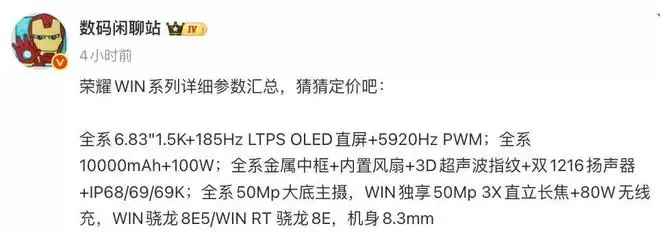 今天,博主@数码闲聊站 在最新的爆料中提到了荣耀WIN系列的详细参数信息。