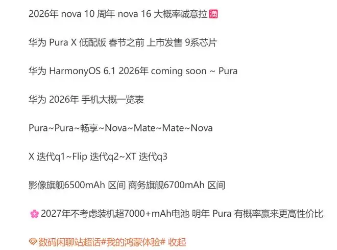 华为nova16与Pura系列前瞻:2026年系统、电池全面升级