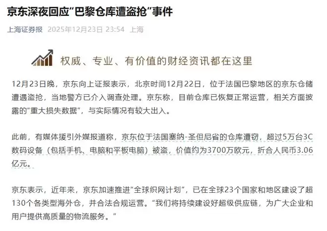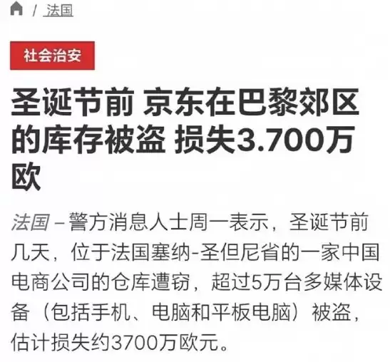 京东法国仓库遭窃:损失3亿传闻待核实
