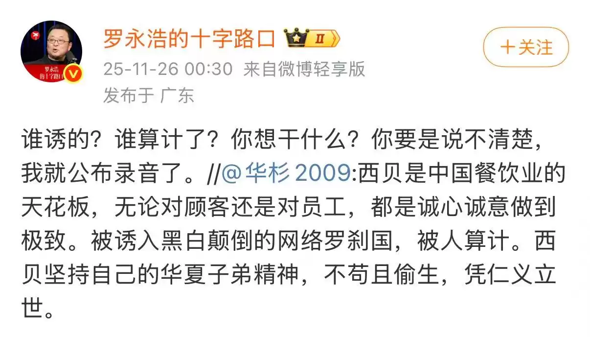 小雷当时看到这事就觉得,华杉也太冲动了,罗永浩是什么人?出了名的敢说敢怼,你敢公开跟他硬刚,这不就是引火烧身吗?