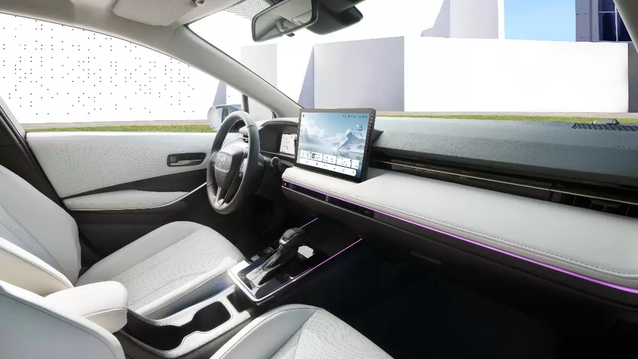 座舱的智能化配置也是全新智混卡罗拉的一大亮点。新车配备8.8英寸全液晶智能仪表与12.9英寸高清多媒体大屏,搭载高通骁龙815P车规级芯片,支持AI语音交互与全平台手机互联,信息显示简洁清晰,交互体验流畅自然。新车支持FOTA和SOTA升级,车机能够像手机一样轻松迭代、不断进化,做到“常用常新”。