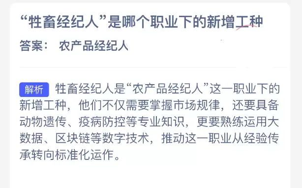 1、“牺牲畜经纪人”是哪个职业下的新增工种