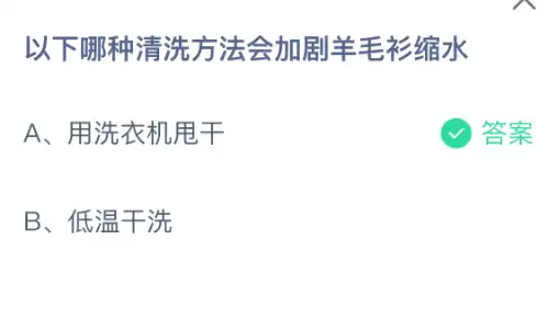 哪种洗涤方式会让羊毛衫缩水更严重?支付宝小鸡课堂开课啦!每天花一分钟答题赚饲料,喂喂小鸡就能贡献爱心,轻松又有意义!2025年12月25日蚂蚁庄园的小鸡课堂题目正确答案是【用洗衣机甩干】,用洗衣机甩干会加剧羊毛衫缩水。