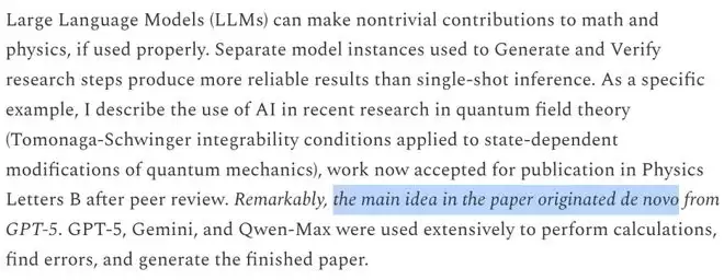 他公开承认:论文的核心想法来自 GPT-5。