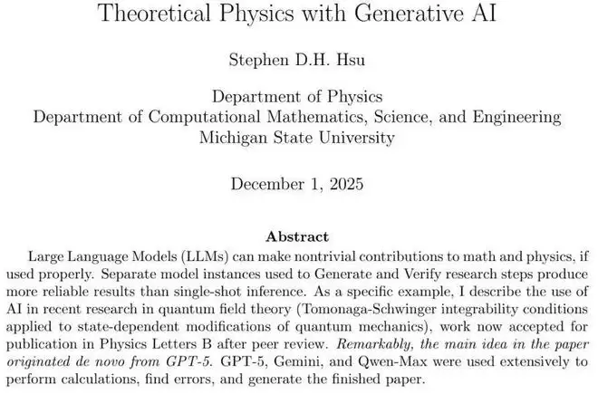 这可能是第一篇由AI提供核心理论突破思路的理论物理学论文。