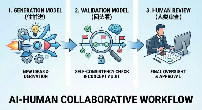另一个独立实例负责「回头看」(检查每一步是否自洽、有没有偷换概念),