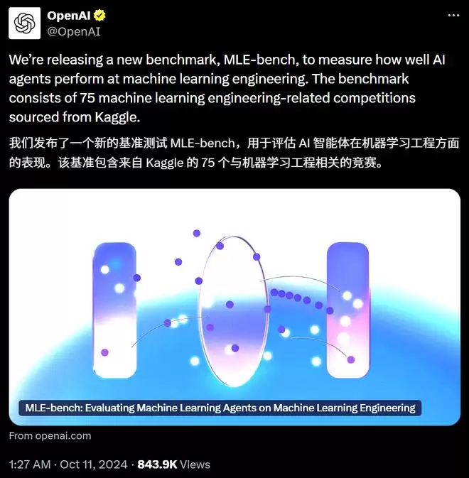 因而,OpenAI所提出的MLE-bench中所聚焦的机器学习工程(Machine LearningEngineering, MLE)任务,恰恰成为AI4AI场景下极为贴切的研究对象。