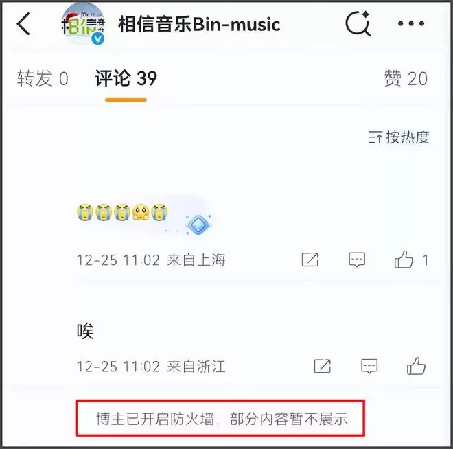 但相信音乐直接无视热搜和网友喊话,在风波后继续发文宣传其他艺人的巡演信息,还开启评论区防火墙,限制网友评论,装作无事发生的样子。