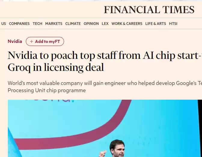 【环球网科技综合报道】据《金融时报》12月25日报道,英伟达日前宣布与AI初创企业Groq达成技术授权协议,后者创始人乔纳森·罗斯、总裁桑尼·马达等核心人才将加入英伟达。此举被业内视为英伟达巩固AI处理器领域主导地位的重要布局。