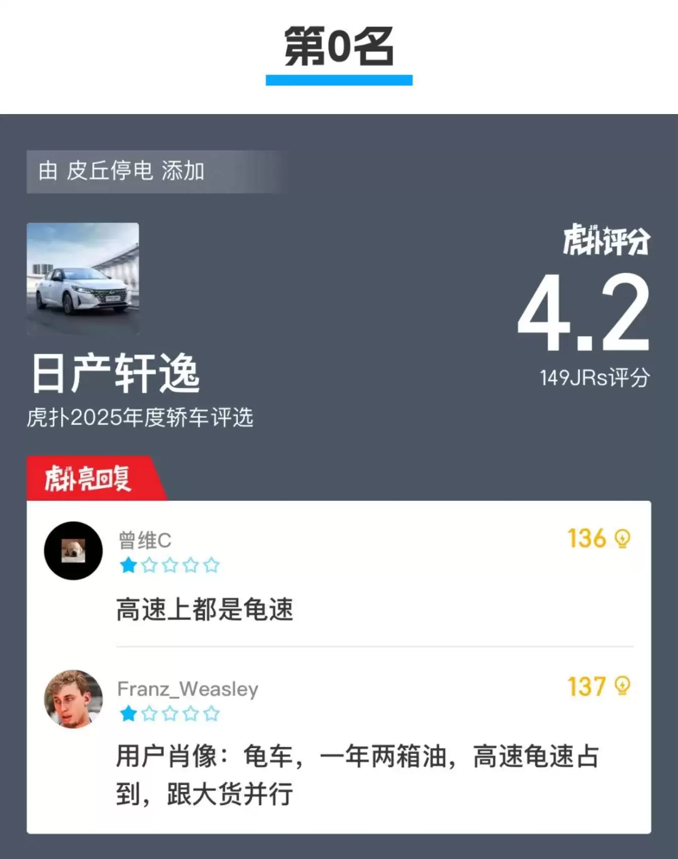在虎扑社区最新发布的2025年度汽车榜单中,用户对轿车的评价呈现出理想与现实的强烈反差,而SUV榜单则展现出更为务实的消费取向。这场由数万用户参与的评选,不仅折射出年轻群体的汽车审美变迁,更揭示了消费决策中理性与感性的博弈。
