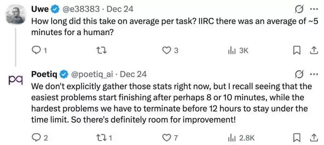Poetiq 回复称,「我们现在没有专门收集这些统计数据,最简单的问题大概在 8 到 10 分钟后就能完成,而最难的问题必须在 12 小时之前终止,以保持在时间限制内。所以,未来肯定还有改进的空间。」