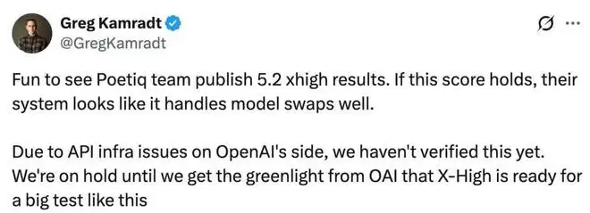 ARC Prize 总裁 Greg Kamradt 表示,「很高兴看到 Poetiq 发布 GPT-5.2 X-High 的结果。如果这个成绩能保持下去,他们的系统看起来能很好地处理模型交换。不过,在 OpenAI API 的基础设施问题解决之前,结果还没有得到完全验证。」