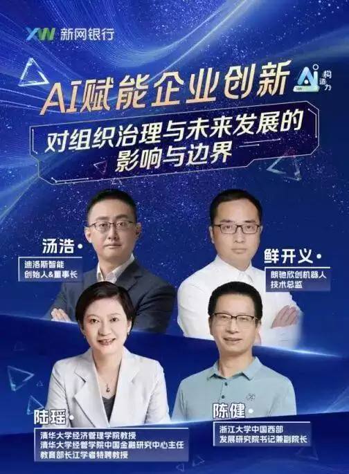 在新网银行“AI构造力”直播间,一场聚焦AI技术如何重塑企业创新逻辑与管理体系的深度探讨,引发了各界广泛关注。清华大学经济管理学院教授陆瑶、浙江大学中国西部发展研究院副院长陈健、迪洛斯智能创始人汤浩、朗驰欣创机器人技术总监鲜开义,这四位产学研领域的权威专家齐聚一堂,围绕AI技术落地应用与企业组织变革,展开了一场思维碰撞。