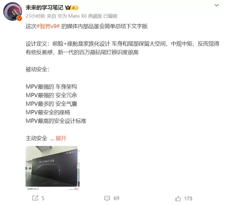 鸿蒙智行MPV智界V9配置曝光:安全与科技双升级提前亮相