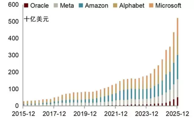 统计显示,截至2025年三季度,微软、Meta、亚马逊、谷歌、甲骨文五家企业资本开支与经营性现金流的比值平均达到75.2%,较一年前上升29.7个百分点。其中,甲骨文的自由现金流已转为负值。