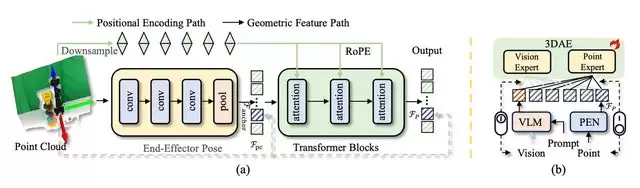 空间位置编码:引入在大语言模型中常见的旋转位置编码 RoPE,它能极好地保留 3D 空间中的相对位置信息,这对于操作任务至关重要。