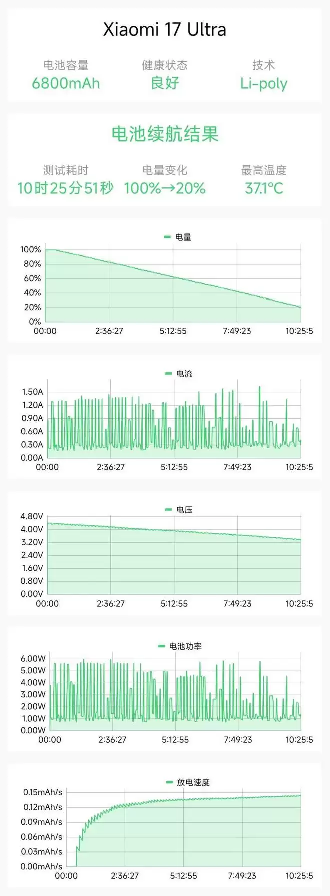 续航方面,这次的小米17 Ultra也是做到了影像旗舰的天花板。