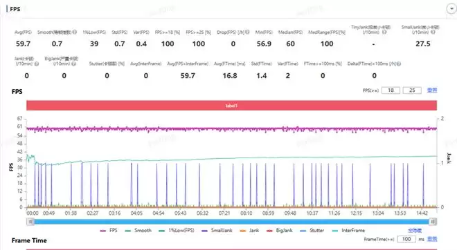 在《崩坏:星穹铁道》这样的超高压游戏,也能非常顺利地运行,平均帧数达到59.7FPS,稳帧指数0.7,1%LOW帧也很不容易地达到了39FPS。