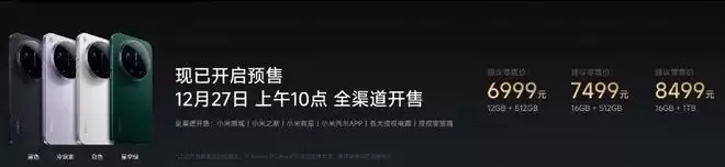 小米 17 Ultra,12+512GB版本6999 元、16+512GB版本7499 元、16GB+1TB版本8499 元。