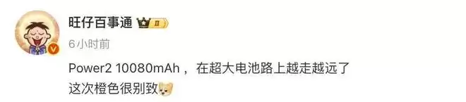 博主@旺仔百事通 在爆料中提到过:“Power2 10080mAh,在超大电池路上越走越远了。这次橙色很别致”。