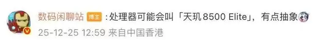 核心规格方面,这份爆料中提到了“D8500”这一信息,且这位博主补充“处理器可能会叫「天玑8500 Elite」”。
