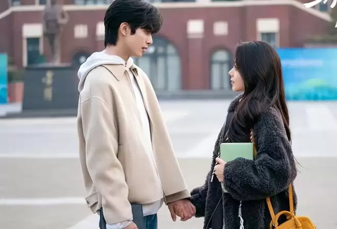 然后镜头再转向女主这边,彼时的聂曦光是一个活泼开朗、元气十足的明媚大学生,长发飘飘,眼神清亮。她家境优渥但一直十分低调,商学院才子庄序的出现,更是照亮了她青春岁月。