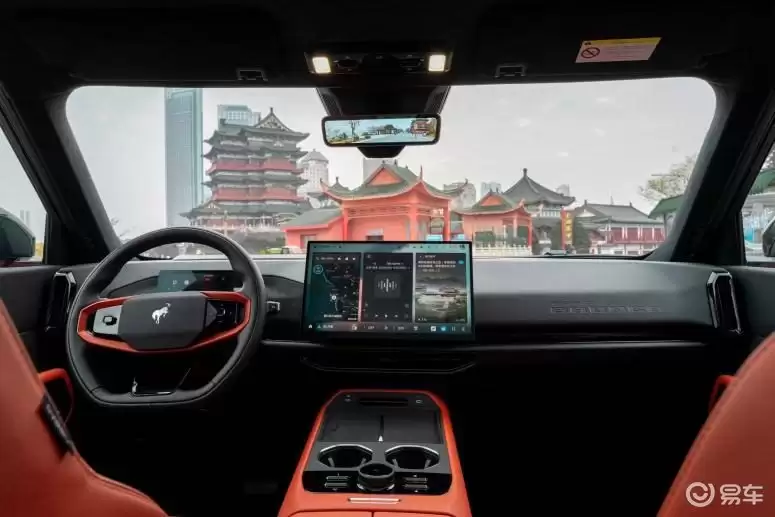 进入车内,科技感与实用性成为主旋律。15.6英寸2.5K Mini-LED中控屏占据视觉中心,内置高通骁龙8255芯片,支持越野360全景系统与智能旅行路书功能,让户外探险与日常通勤均能游刃有余。配置清单上,70英寸AR-HUD抬头显示、全液晶仪表、21扬声器音响系统、7.5L冷暖车载冰箱等豪华配置一应俱全,甚至考虑到长途驾驶的便利性,还配备了手机无线充电与全景天窗。这种“堆料式”的诚意,在同价位车型中堪称罕见。