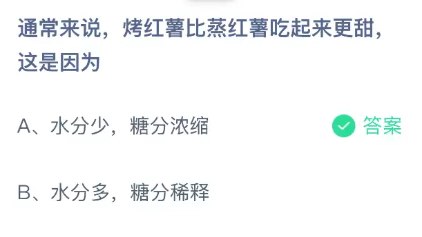 烤红薯为何比蒸红薯更甜:蚂蚁庄园12月26日答案解析