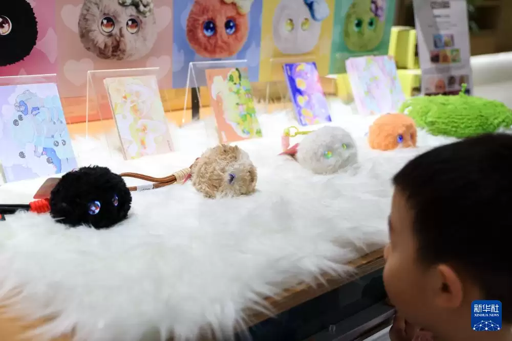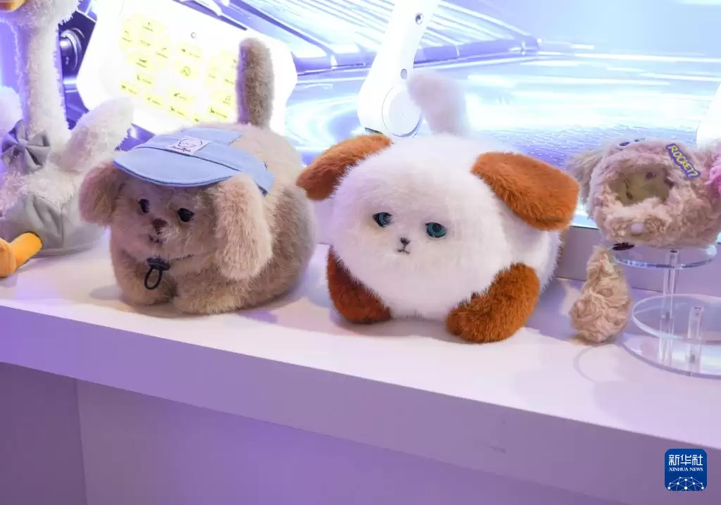 这张照片拍摄于10月23日举办的第24届汕头澄海国际玩具礼品博览会,画面中展示的是一款AI毛绒玩具。