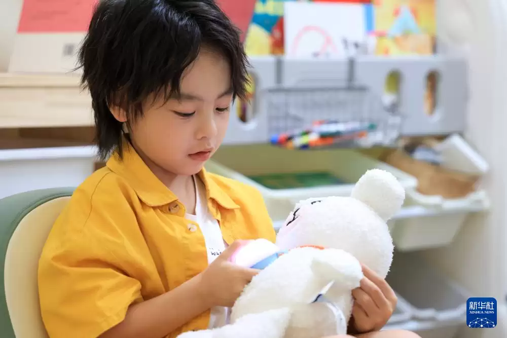 10月31日,在位于深圳的跃然创新科技有限公司Haivivi总部,一位小朋友正在体验该公司研发的AI玩具BubblePal。
