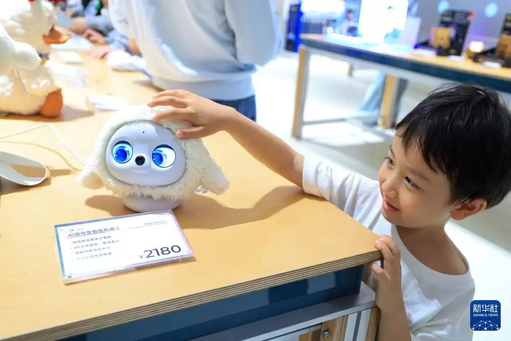 12月21日,一名儿童在深圳全球创新旗舰店inno100体验AI玩具Ropet。