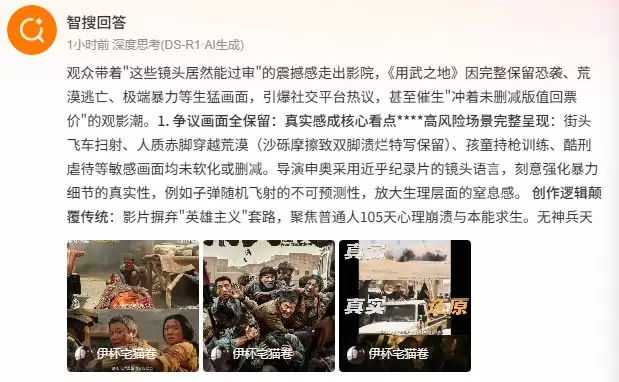 之前就听说了一些关于影片暴力场面的描述,甚至片方还很满意这个设定,我看还专门做了一个热搜词条叫“这些镜头居然能过审”。