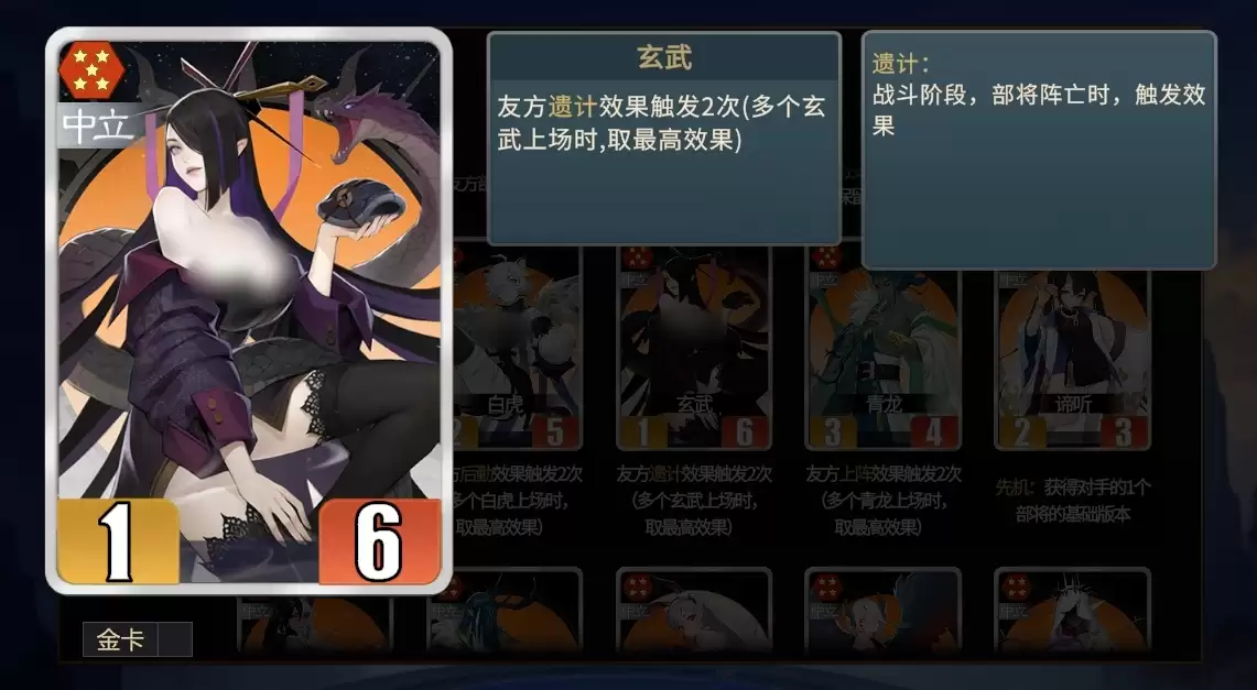 可在前期拿魏卒等较为强势的牌来过渡,中期拿一些曹仁来作为挂件,无需三连,后便要换。等商店等级高后,就可找九尾、饕餮、玄武、郭嘉、许褚、夏侯惇,至此整套阵容也就基本成型。后续可视情况把曹仁等部将卖掉,换成多个许褚搭夏侯惇亦或用多个夏侯惇搭许褚,看自己所拿到的部将情况来选择,并利用遗计带来的提升转变为多核体系。该阵容无需用其它阵营的牌来过渡,所以在游玩时不会觉得卡手,阵容搭建起来会有种很不错的丝滑感。