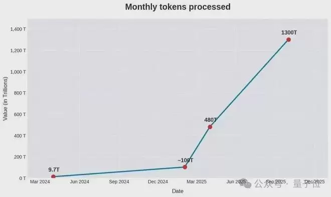 火山引擎最新披露的数据显示,截至今年12月,字节跳动旗下豆包大模型日均token使用量突破50万亿,较去年同期增长超过10倍,相比2024年5月刚推出时的日均调用量增长达417倍;谷歌在10月披露,其各平台每月处理的token用量已达,相当于日均43.3万亿,而一年前月均仅为9.7万亿。