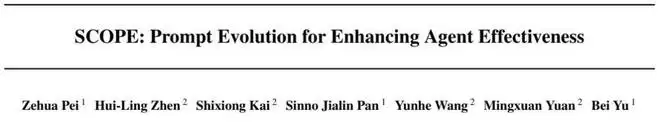论文:《SCOPE: Prompt Evolution for Enhancing Agent Effectiveness》论文地址:https://arxiv.org/abs/2512.15374开源地址:https://github.com/JarvisPei/SCOPE