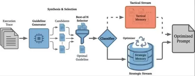 当 Agent 遇到错误或完成子任务时,SCOPE 的生成器(Generator)会分析执行轨迹,合成候选指导规则。这里采用 Best-of-N 策略:生成多个候选规则,然后由选择器(Selector)挑选最佳的一条。