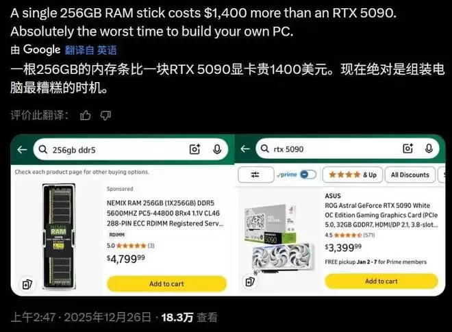 256G内存比RTX5090贵?AI买单值不值