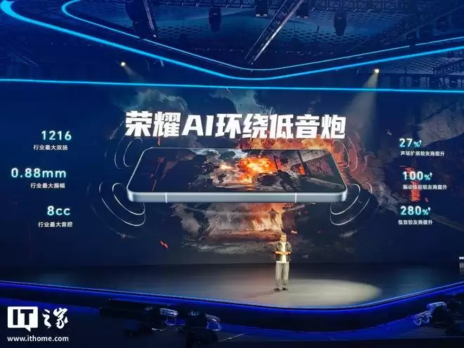 其他方面,系列手机全系搭载 10000mAh 巨无霸青海湖电池,搭配荣耀都江堰电源管理系统和能效增强芯片 HONOR E2,至高支持 100W 有线超级快充、80W 无线超级快充(仅荣耀 WIN)、最高 27W 有线反向充电,并搭载荣耀 AI 环绕低音炮(双 1216 扬声器),提供了 IP68/69/69K 防护。