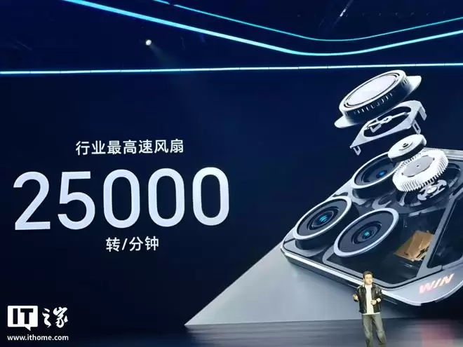 最新重点强调了系列机型搭载的荣耀东风涡轮散热(内置风扇)设计,相应风扇号称“体积行业最小、重量最轻、转速最高”,同时匹配行业首创直驱疾冷风道设计,可实现双 360 度环绕进风,转速 25000 转 / 分钟,匹配 3D 蝶翼 VC 散热系统,能够实现“安兔兔史上最高跑分 4409382 分”。