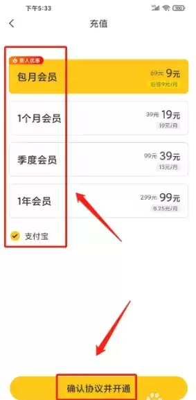 然后跳转至充值页面,挑选你心仪的会员套餐,最终点击“确认协议并开通”选项即可。