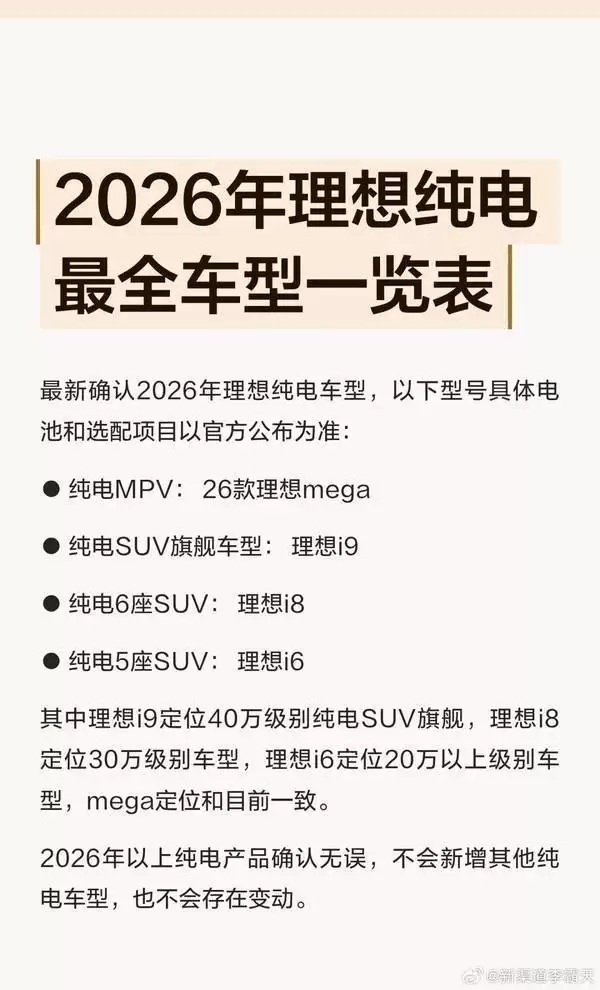 2026理想纯电新车i9领衔,四款车型开启双轮驱动新篇章