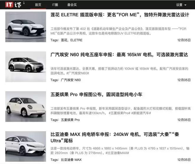 IT之家12月26日消息,按照惯例,工业和信息化部每月上旬或中旬都会发布最新一批《道路机动车辆生产企业及产品公告》新产品公示。这意味着,众多车企的新产品都有机会在这个节点迎来“首次亮相”。因此,每月的新产品公示名单也被业界戏称为“工信部车展”,而在我们这里,则会带来周期性的汽车新品刷屏资讯。