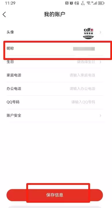 最后,在此页面内修改您的昵称,并点击【保存信息】即可成功更新。