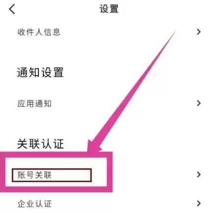第二步,在设置菜单中,你会看到“账号关联”这个功能项,点击它进入下一步。
