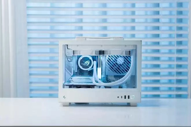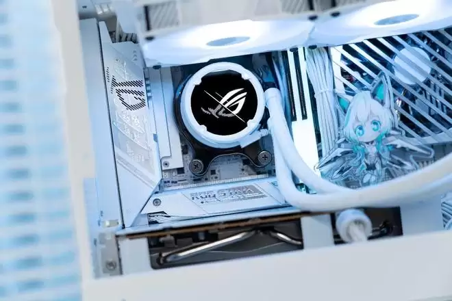 我们将ROG B850迷你吹雪与九州风神 CH160 机箱进行搭配装机,纯白主板与ITX机箱完美契合,整体视觉效果简洁清爽,充分展现了ITX 装机的精致感。