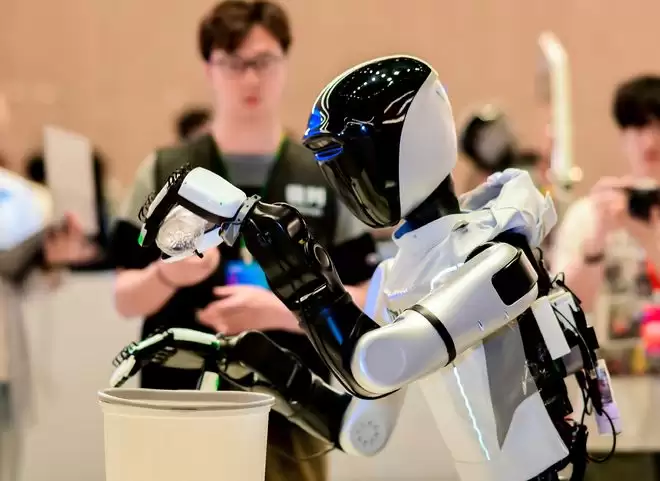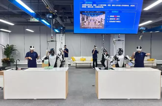 图为星动纪元人形机器人参加2025国际人形机器人技能大赛