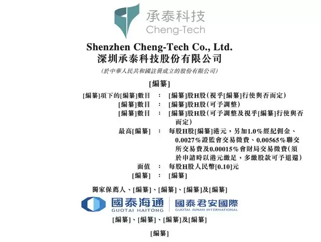 车东西12月26日消息,日前,深圳承泰科技股份有限公司(以下简称“承泰科技”)向港交所主板递交上市申请。
